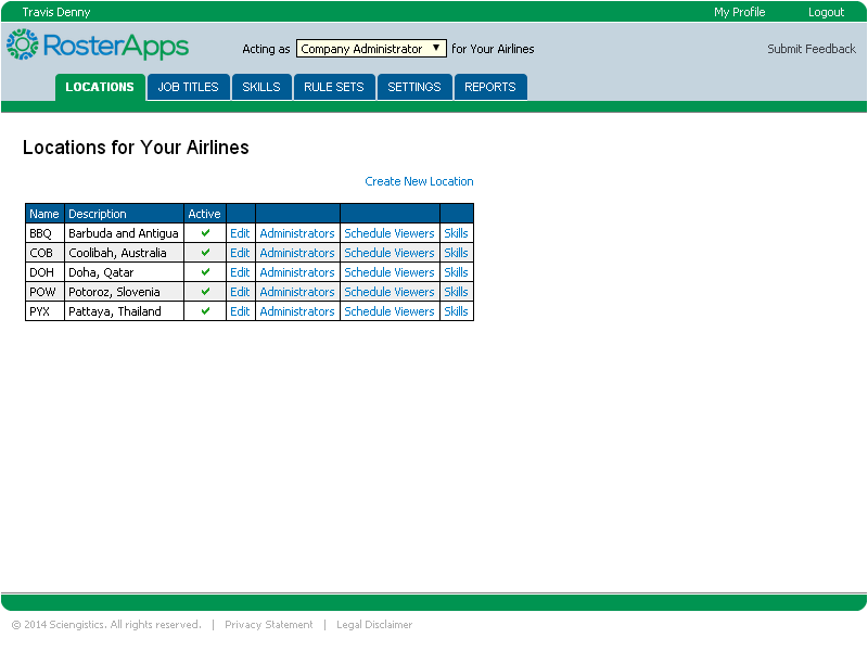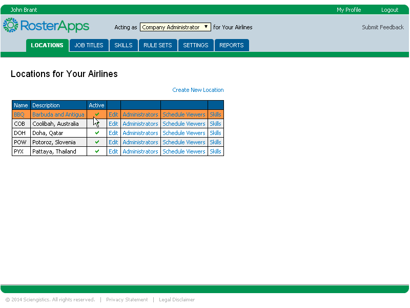Company administrators are concerned with the high level configuration of the company and can create and make changes to locations, skills, job titles, rule sets, absent reasons, paid time off reasons, and overtime reasons. Company administrators can also add people to the location administrator role and the schedule viewer role. They can also run company level reports.